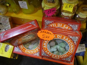 These are the Amaretti biscuits which Bev will be setting fire to on her return to the UK. Seems a strange way to spend €5 to me, but each to their own. I can’t even begin to understand why the restaurant wouldn’t let her set fire to her biscuits in their premises….