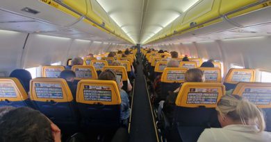My exit row seat, with the middle seat not being filled on the flight. I fell asleep soon after boarding, fortunately waking just as they handed out the water and cereal bar (which are still in my bag) before having another little sleep. Very restful. This is the big advantage in British Airways over Ryanair or WizzAir, who bang and clank down the aisle trying to sell things. It’s not the fault of the hard-working crew at these airlines, just the model in which they have to work. It was the usual professionally operated flight, the pilots were reassuring and gave useful announcements, whilst the crew were endlessly polite and efficient.