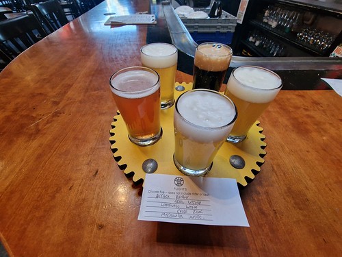 As one of my occasional reminders, all the beer I’ve tried is listed at https://untappd.com/user/julwhite. I was surprised and delighted with the quality of these beers, they were all decent, but the Attack Position which is the imperial stout at the rear was the best of the lot. Rich, decadent, chocolatey, notes of vanilla and it’s 11% wasn’t too apparent. I very much enjoyed this visit, it was a laid-back and comfortable atmosphere and I liked people watching from the bar. And also, extra marks for the excellent presentation of that cog thing, or whatever it’s called (Liam will know as both an engineer and a bike obsessed person).
