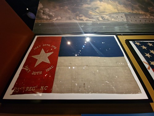 This is a powerful piece of history, the North Carolina state flag that was carried by the 33rd regiment of the state’s troops into what became known as the Battle of New Bern on 14 March 1862. As misguided armies go in the history of warfare, it’s perhaps the confederate army that seems the most tragic as great chunks of those fighting were conscripted and many were there because they were defending their state out of loyalty. It’s true they were fighting for the right to hold slaves, although, conveniently for wealthy slave owners, if you ‘owned’ 20 slaves then you didn’t have to take part in the war. Very handy that was.