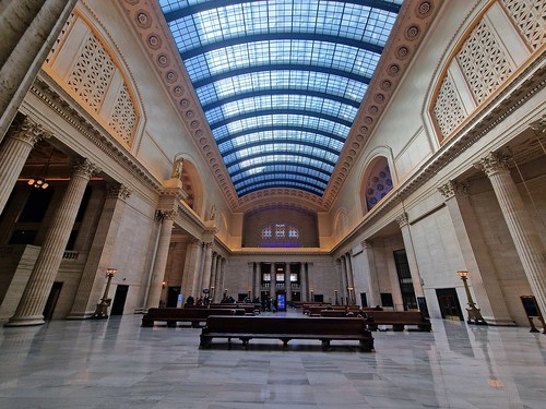 I’ve been to Chicago Union station many times before, but I’m still always slightly in wonder at its grandeur and beauty. 100 years ago this would have been how everyone travelled, before the convenience of domestic air flights and also before mass ownership of cars. The station itself is from 1925, replacing the smaller building which had served rail passengers since 1881. The word “union” is used because it was used by multiple rail companies, hence the number of Union Stations around the country.