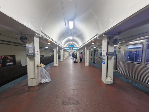 However, it was cheap and efficient, and I was able to take a blurry photo safely back at the metro station at O’Hare Airport. This airport extension to the blue line was opened in 1984 and the transport authority is promising to make the cars rather more luxurious as they continue their roll-out. Having looked at some of these designs, they’ve removed the wood effect and put some cushioning on the seats, a definite improvement on the way.