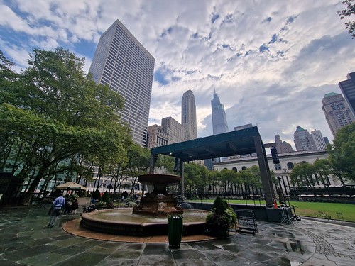 No real text to this post, but I just liked this photo of a rainy morning in New York. I had been warned by someone just how rainy it was when walking down the steps of the hotel (well, pod place) but hadn’t quite expected it to be as bad as it was. That’s the disadvantage of being confined to a small pod away from any windows. Fortunately, I’m fully prepared for most weathers on this trip and my waterproof coat and bag cover came out, as I can’t have my McCain’s bag getting wet (primarily as the damn thing takes ages to dry). The location is Bryant Park which was first laid out in 1847 and is named after William Cullen Bryant, a long-serving editor of the New York Evening Post.