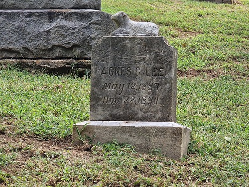 I can’t offer anything on this other to note that Agnes Lee lived between 12 May 1887 and 22 November 1890, dying at three years of age and then being buried at Hollywood Cemetery. The average life expectancy, from birth, in the United States in 1860 was just 35, although by the time that Agnes was born it had increased to 41, but that’s still a lot of deaths in early life.
