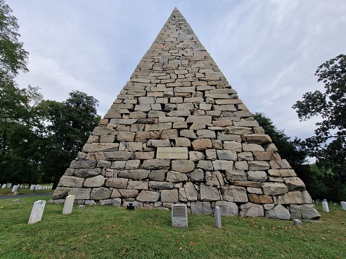 This large pyramid is located at Hollywood Cemetery and was erected here in 1869 to commemorate the 18,000 Confederate men who lost their lives in the Civil War and were buried here. The cemetery itself prefers the interpretation not that the Civil War was “a lost cause” but that it united the nation and set the foundation for the future.