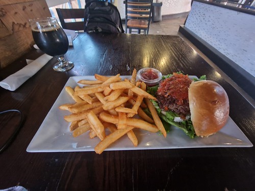 Note my bag was given its own seat and this is the bison burger. I’m not actually sure that I would have noticed that this was bison as opposed to beef, but it had a pleasant flavour and it was sufficiently filling for my needs. Everything was at the appropriate hot temperature and there were a decent number of chips.