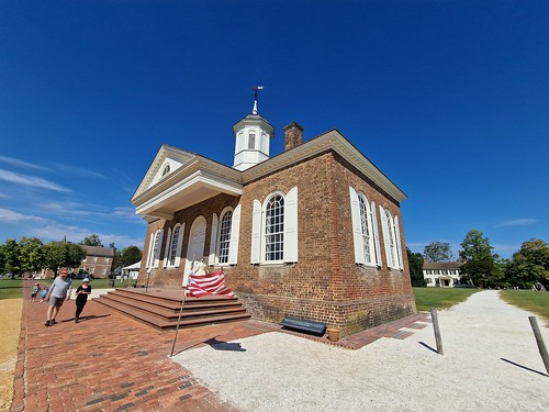 The courthouse in Williamsburg was constructed, although the designer is unknown, between 1770 and 1771, originally holding two separate courts, the James City County Court for hearing cases in the wider region and the Hustings Court for matters which happened in Williamsburg itself. The building is located in the middle of old Williamsburg, a deliberate decision to note that it was at the centre of the community.