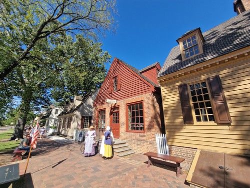 With some period reenactors standing outside, this is an original building, known today as the Margaret Hunter shop. She established her business here in around 1770, making hats, cloaks and fans, remaining here until her death in September 1787. I understand that she came to Williamsburg from London in the late 1760s and she established some wealth, whether before or after arriving here, and it’s known that she ‘owned’ at least six slaves. She also faced the challenge of trying to ensure that the products she sold were fashionable, with trends in Virginia often reflecting the latest on-trend look in London.