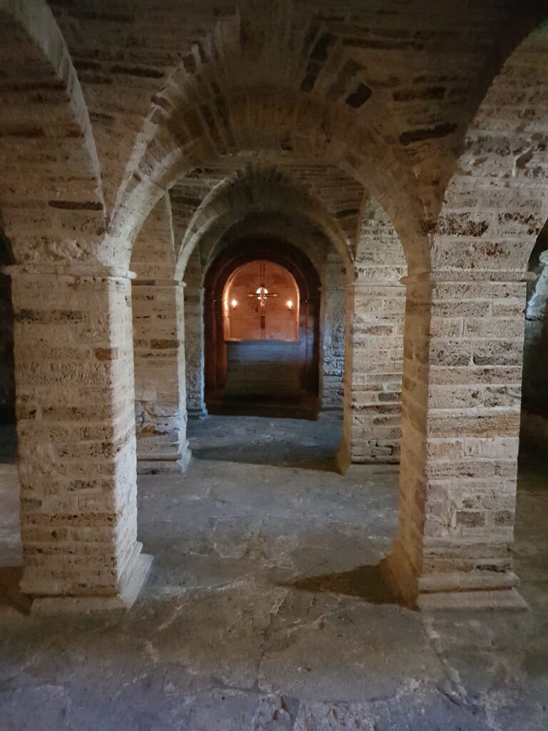 When the main cathedral was built this church was no longer needed and was given to the Benedictine monks in the twelfth century. The existence of the crypt was eventually forgotten about until the 1950s when it was discovered by chance by gardeners (doing what I’m not quite sure) and after a large archaeological dig it was excavated and restored.
