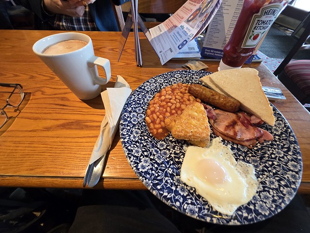 My traditional breakfast was served promptly and just as a team member came over and said to Richard that they didn’t have any toast and they wondered if he would like anything else, as they assumed he wouldn’t want raw bread. The team member obviously didn’t really expect to have a customer come in that wasn’t really meant to be eating anything as decadent as toast, so there was little else that could be offered. Meanwhile, I had lost interest in his problems at this point as I had food to eat and although I would have rather had toast than raw bread myself, this food and unlimited coffee came in at under £5 so I didn’t feel the need to be overly disappointed. Full marks for the eggs still be runny and the bacon not being fatty. Richard was contemplating his entire day as his hopes to just have a little toast were shattered and I did wonder whether it might have been easier for them to buy a small-scale toaster until their commercial arrangement was fixed.