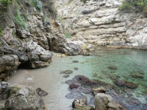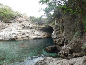The view down into the secluded little bay, with the water being clear and inviting. Although not so inviting that I wanted to swim in it.