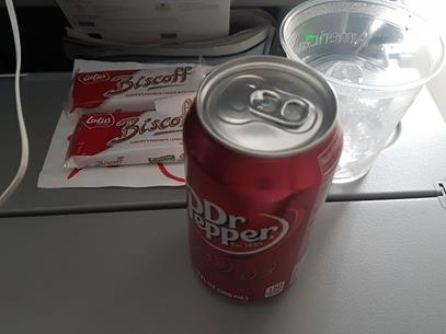 There’s a free snack and drink, and I can rarely resist Dr. Pepper when in the United States…. Not sure why American Airlines selected such a European snack though.