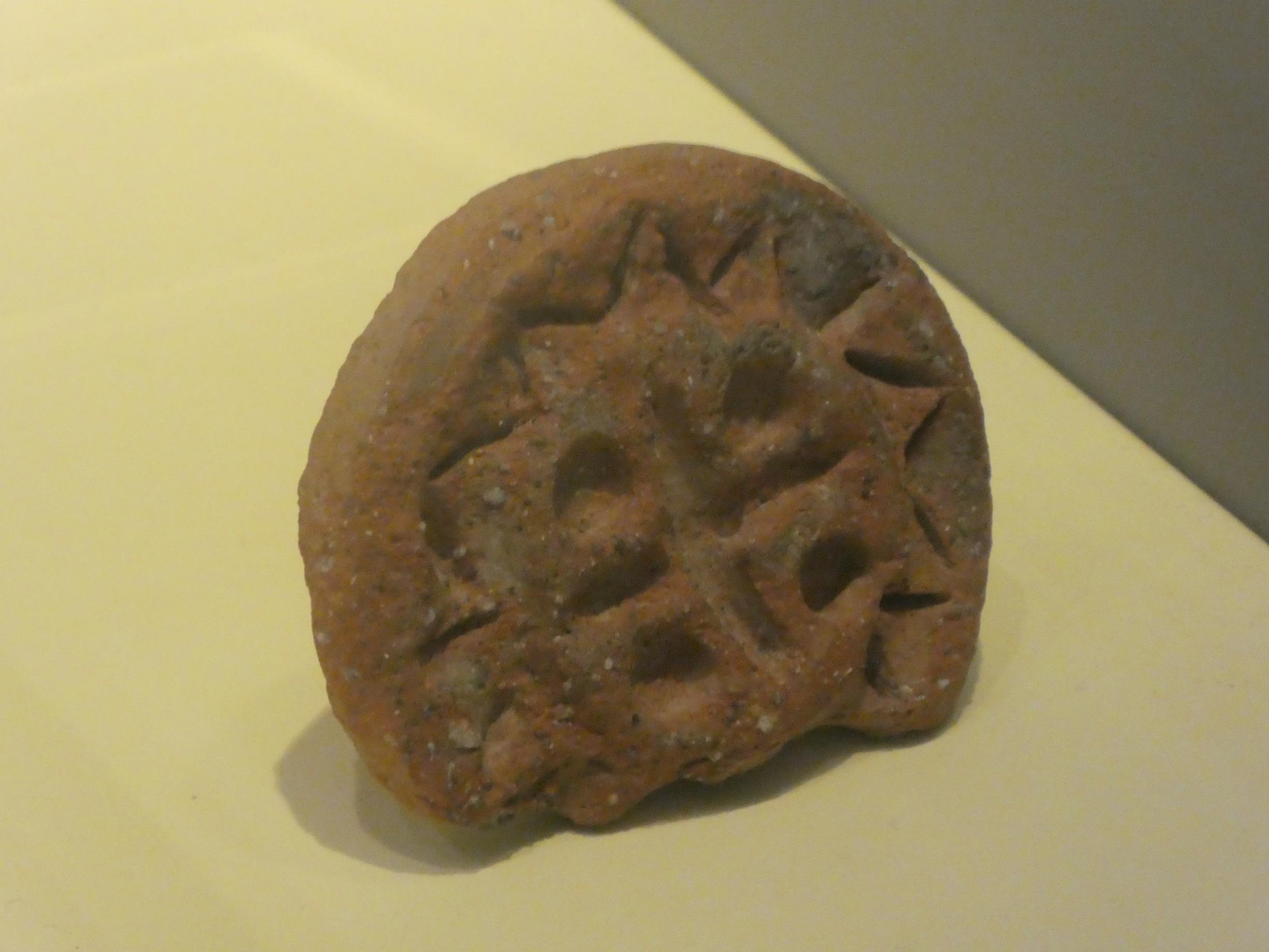 A bread stamp, used to imprint designs into bread, from the mid-Byzantine period.