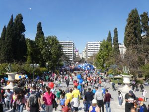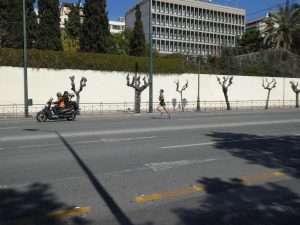 This was a big event today in Athens and I know this because it was difficult to cross the roads as it was such a well attended run. It all looked well organised and there were free bananas available for everyone, both runners and watchers alike. But unfortunately not free crisps, which would have helped me get really engaged with the event.