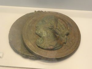 And another folding mirror which was found in Demetrias, which is now in Greece, and shows a female with an earring. It dates back to the third century BC and was likely owned by a wealthy individual.