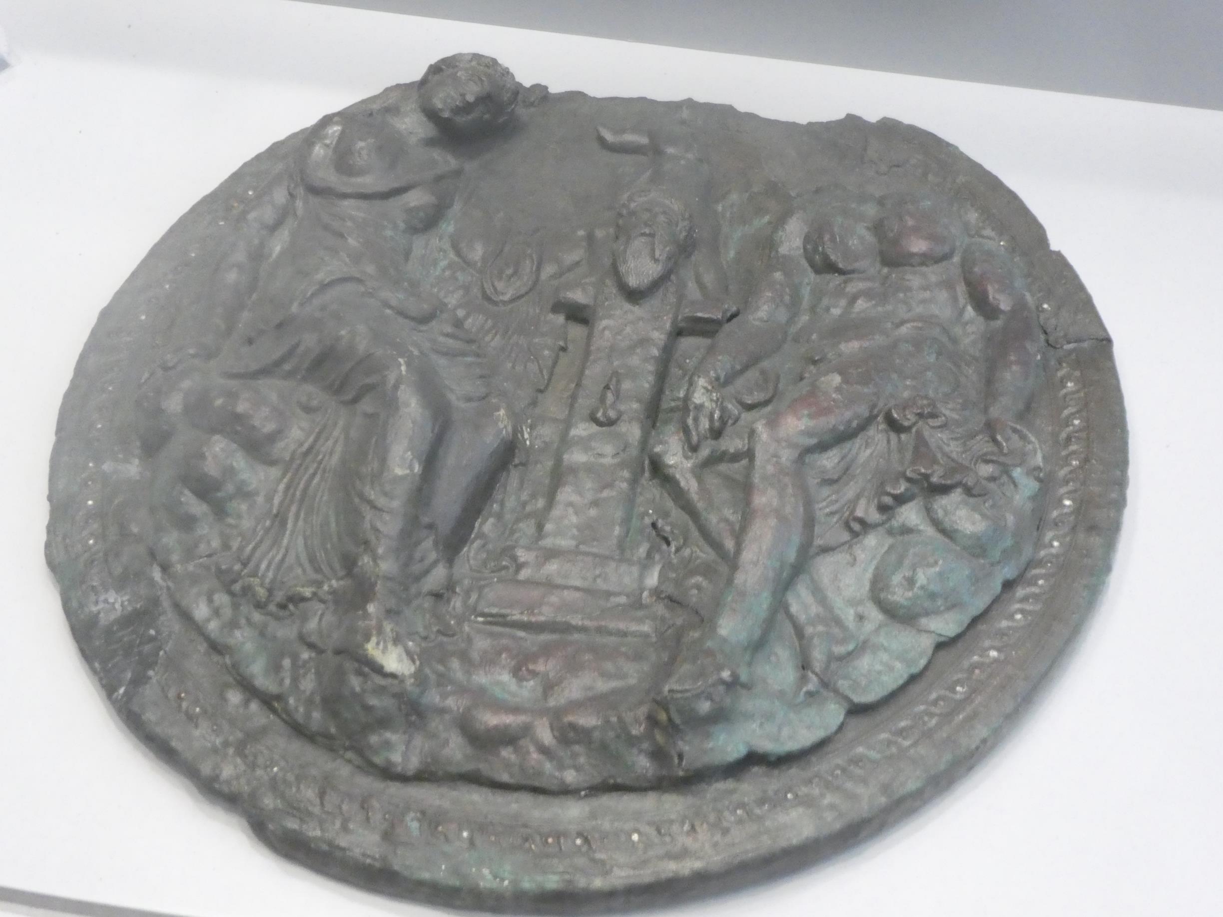 So, this item is a folding mirror, and it shows the female Goddess Nike, which represents victory, killing a bull. Not the most pleasant item perhaps, but it has some age, it dates to around 290BC to 300BC.