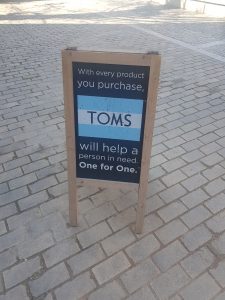 There are a few of these locations around the world, although I must admit that I hadn’t heard of the company name, just the concept. In short, it’s a shoe shop and coffee shop where for every product purchased the company give another free to charity.