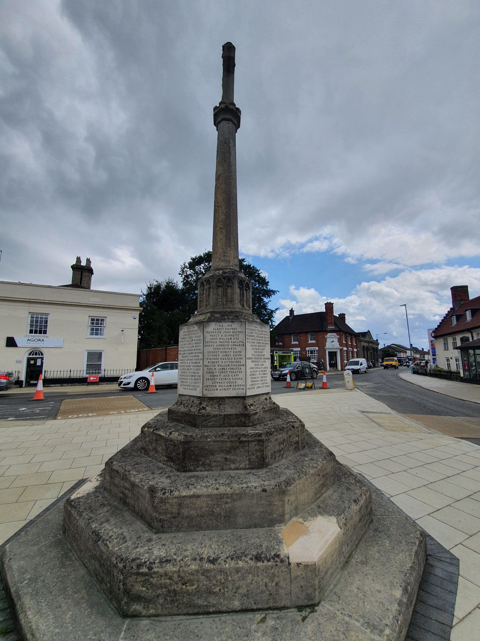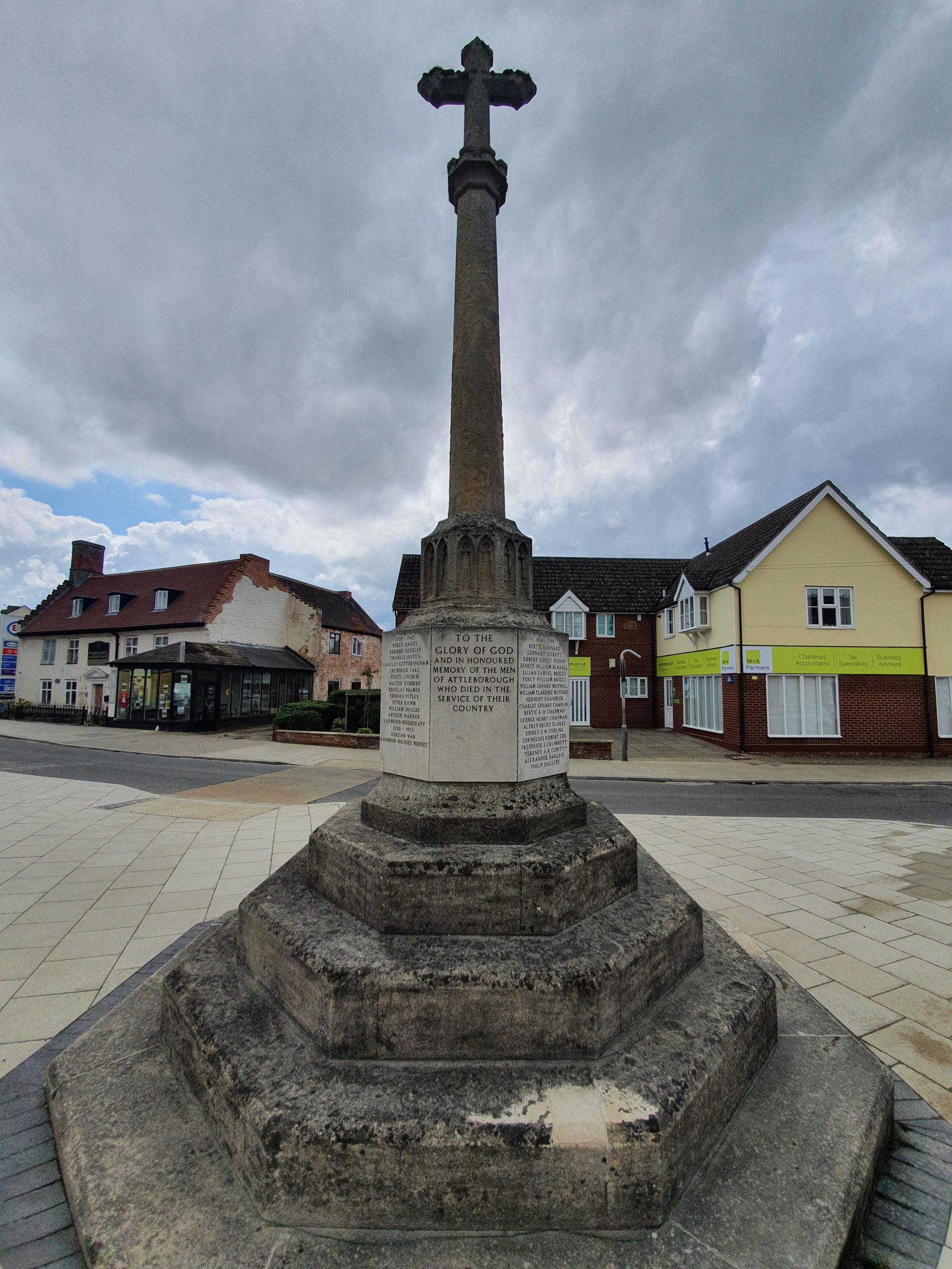 The war memorial in Attleborough, located at the end of Queen’s Road, was designed by local sculptor AJ Harrison at a cost of £350, which was funded by public subscription. The memorial was unveiled on 27 June 1920 by Earl Albemarle at a ceremony attended by the Bishop of Norwich, which followed a service at St. Mary’s Church. Former servicemen and relatives of the dead walked to the memorial from the church whilst the Norfolk Regiment band played Beethoven’s Funeral March. At the end of the service, the Regiment band played Chopins’s Funeral March and finally, a bugler played the Last Post