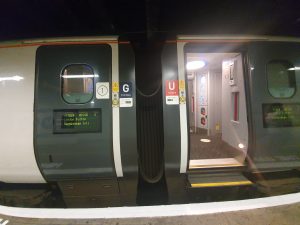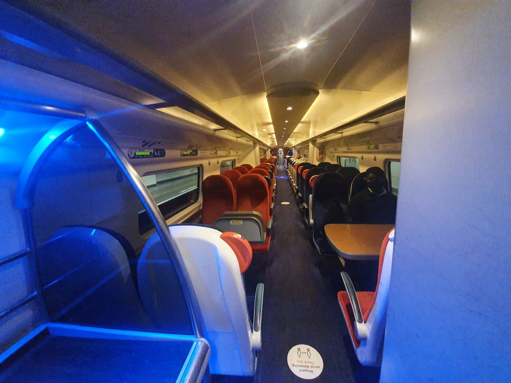 The carriage, all clean and bright, although I couldn’t find any at-seat power (not that I actually needed any given that the journey was only twenty minutes). These are the old Virgin trains from when they operated the West Coast mainline franchise from 1997 to 2019, but Avanti will only hold the new franchise until 2026 due to changes to the way that the rail system will operate in the future (I suspect for the worse, but that’s a discussion for elsewhere).