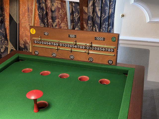 The first round of the competition involved groups of three and I was selected to play against Nancy and Lee. The anticipation was palpable, the air thick with the scent of polished wood and the faint clinking of anticipation from the players who had started. Anyway, with the tension racked up, I promptly lost my first match to Nancy so that was bloody sub-optimal, but she deserved the victory. To my slight surprise, I managed to beat Lee which meant that I came second place in the group as Nancy also beat Lee. Also, note the racked up pun in that paragraph. This was also when I heard that Dave Brewer, one of the leading lights of bar billiards in Norfolk, had managed to lose both his first round matches. I thought that if talent of that quality wasn’t winning then the standard must be high.
