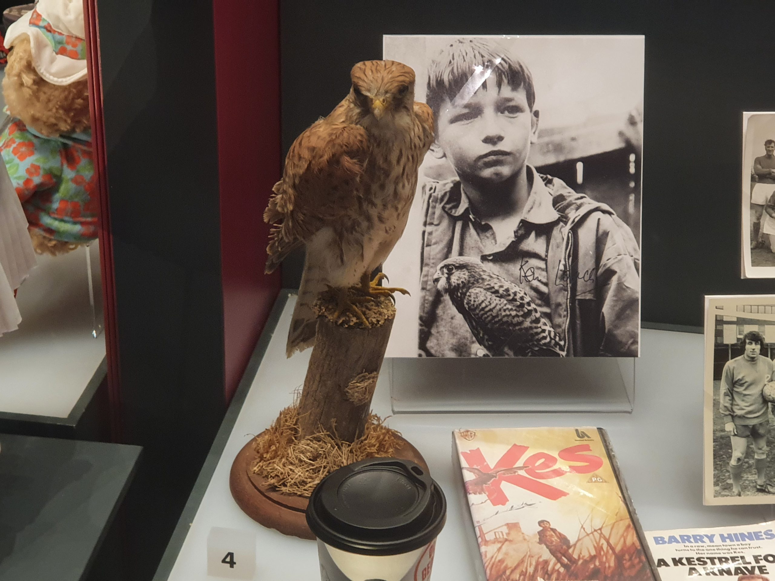 I’ve seen the film Kes a couple of times, this display contains a signed photo from Ken Loach and a taxidermy kestrel.