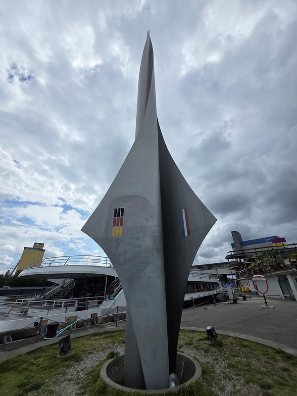 The monument which was erected here in 1957, with the three wings of the rocket looking thing representing each country. When it was constructed, Europe was very different and I’m not sure many would have imagined that the borders would have come down between these three countries. Incidentally, it looks relatively lightweight but it weighs 8 tonnes and had to be hoisted into place by crane. Apparently, a Hungarian mathematician, Istvan Csontos, who had fled to Switzerland, was involved in painstakingly calculating the complex curves of the monument.
