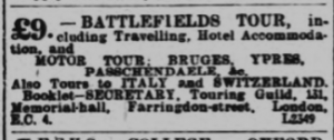 This is another one of my random posts, but it never occurred to me that tours of the Belgian battlefields were being operated just a few months after the end of the First World War. I assume that relatives would want to go and see where their family had fought, and perhaps died, but it must have still been very much a scarred landscape.