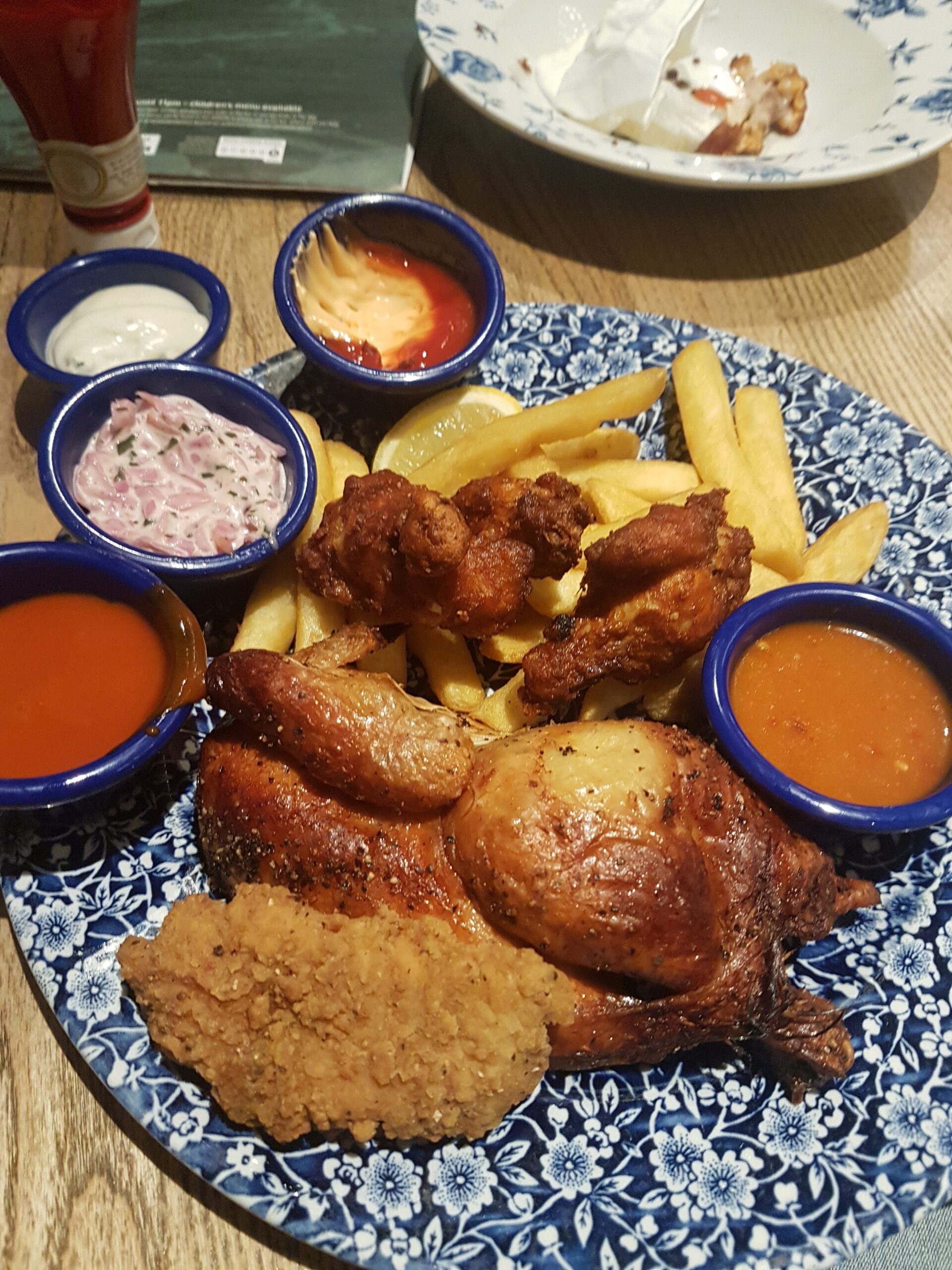 This is I think one of the platters that they used to do before the chain shifted to small plates, I assume that’s some sort of chicken in the middle.
