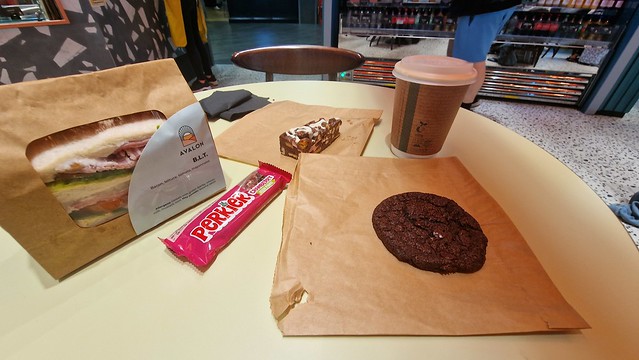 The staff member said that I wasn’t spending anywhere near the allowance and she suggested a sandwich, before then adding other items to come to exactly £18. I wasn’t going to turn this down, so I then had more food than I really needed. However, I’m telling myself that this is an opportunity to try the various Priority Pass offerings, so it didn’t seem like a bad idea. The sandwich was slightly moist from the tomato, but the ham was quite decadent and gave the whole arrangement a pleasant taste. I’m not really a dessert person, but the cookie was chocolatey and the Big Rock cake was more than enough. I took the cereal bar to Belgrade with me for a late night snack.