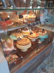 The selection of cakes. Ordering is at the counter and the staff member was welcoming and engaging, with customer names being called out when the order is ready.