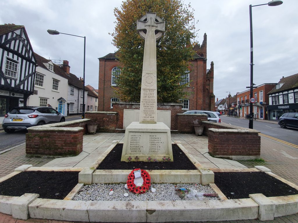 Billericay’s war memorial was unveiled on 16 October 1921 (so, by chance, 99 years to the day when I visited), listing the names of the 62 men from the town who lost their lives during the First World War. Sadly this of course wasn’t the end of war, a panel was added behind the memorial following the Second World War, with the names of 54 men who had died in that conflict.