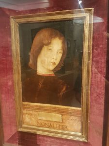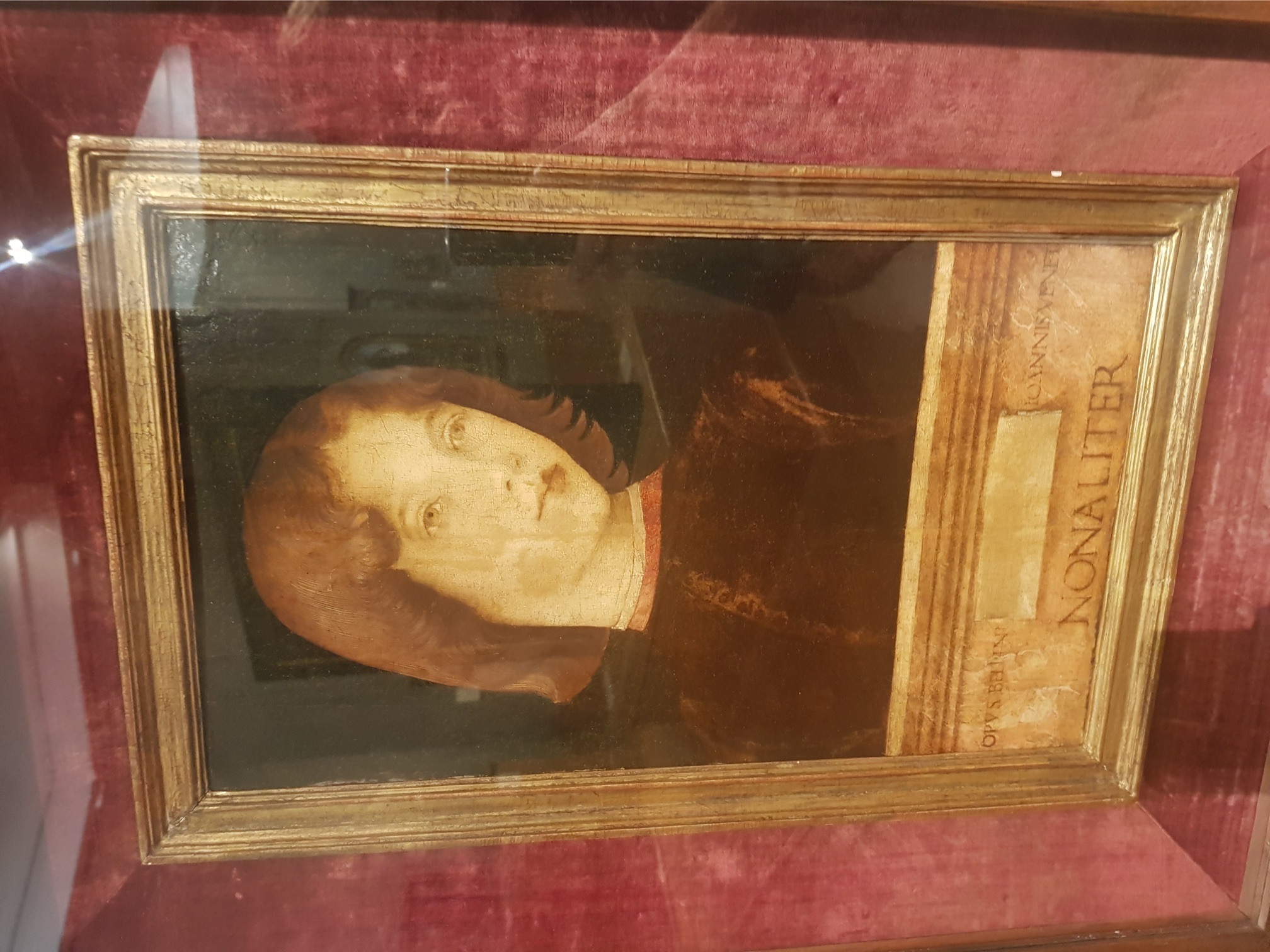 This artwork was originally used as part of a lid of an inheritance chest and was painted in Venice in around 1475. I’m not entirely sure what an inheritance chest is (as opposed to any other chest) and an on-line search for the term just finds the description that the gallery have for this artwork. The information provided by the gallery does though add that the chest was constructed to hold the marble bust of Angelo Probi who died in 1474.
