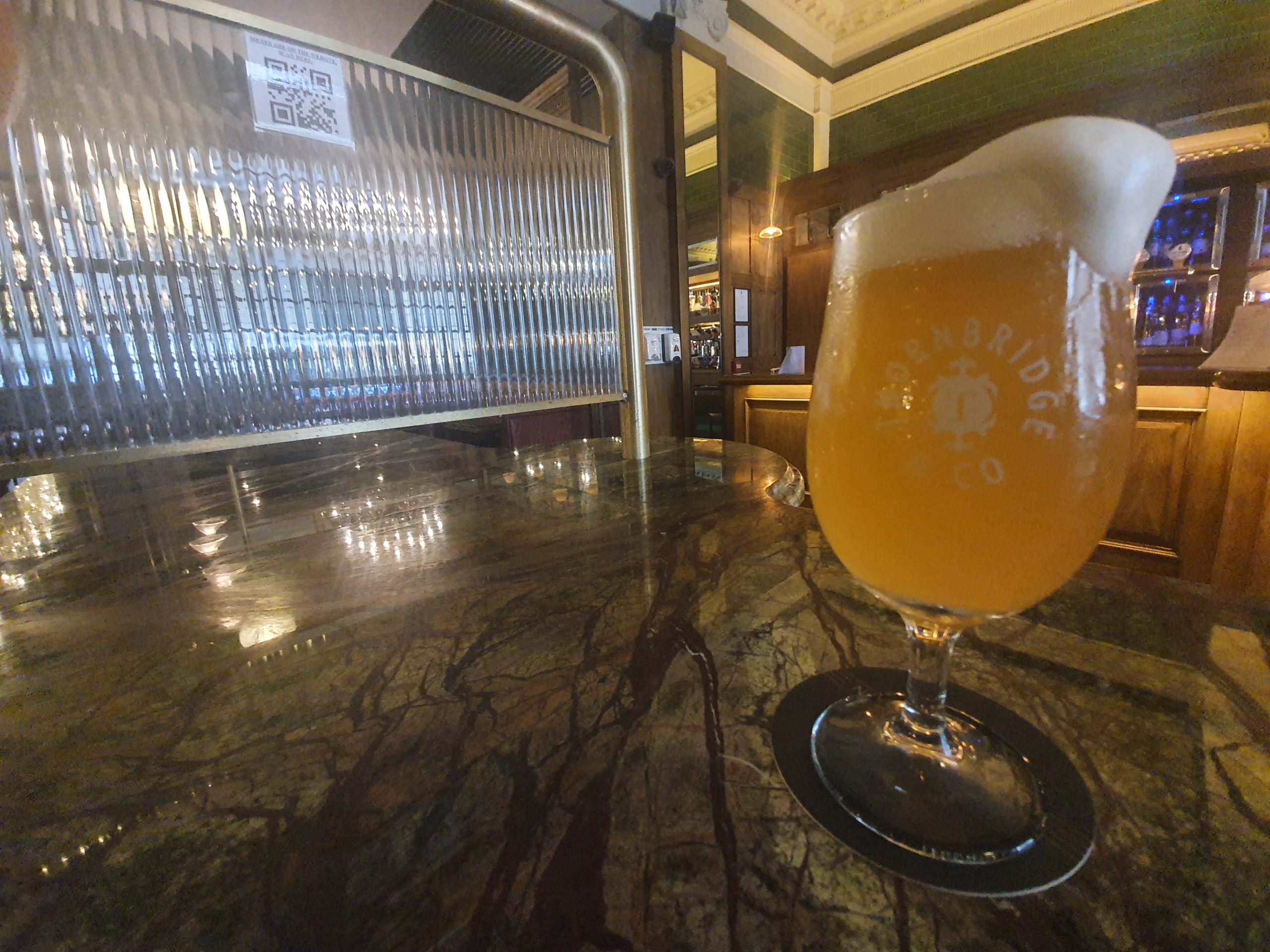 There’s a grand bar and there are QR codes at the table so that customers can see what’s available. I visited on the first “Freedom Day” and they’re taking orders at the bar again rather than offering table service, although I suspect they’d offer it on request as the staff seemed very keen to engage. The beers are mostly from Thornbridge Brewery, which is rather lovely as I rate them highly and have visited their taproom.