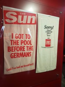 Part of the exhibition on British-German relations at the special UK exhibition being held at the Haus der Geschichte. The curators seem to have amused themselves in finding cultural references to how the British view the Germans and vice versa.