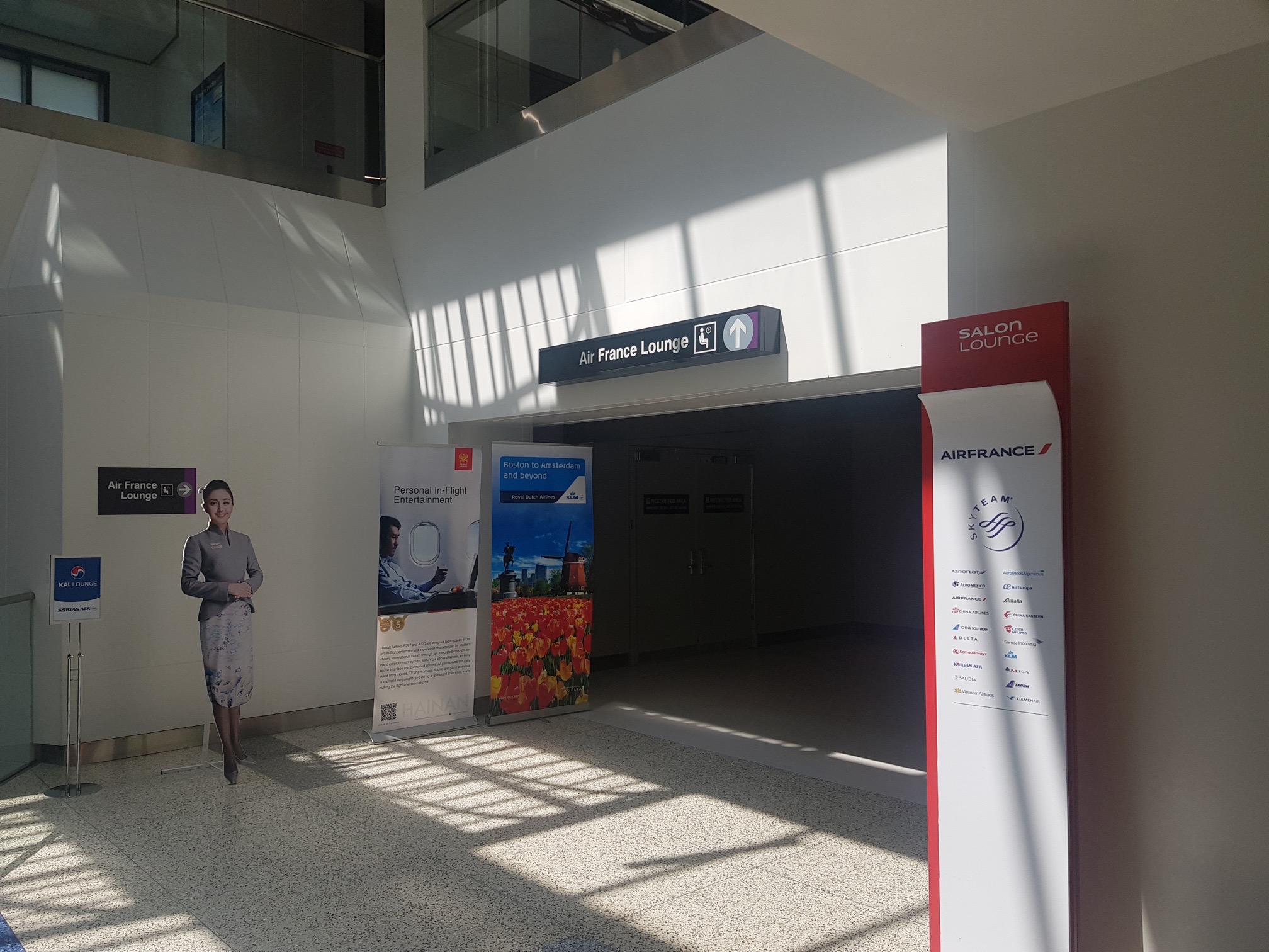 The Air France lounge at Boston Airport, which is a little tucked away in Terminal E, quite a way from the other lounges. I got access to this lounge with Priority Pass, it’s unusual in that it’s an Air France lounge that’s part of that scheme and also that it doesn’t have any restriction on opening hours.