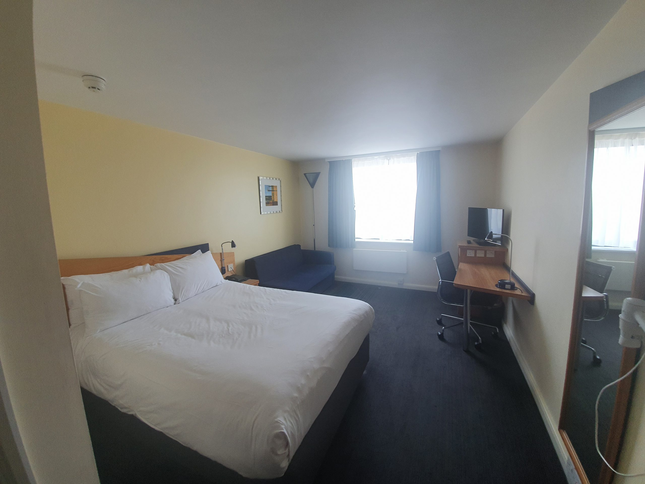 My room, which I felt was very comfortable and I was pleased to note that the windows opened so that I didn’t end up in a sterile environment. There was a fan and heater as well (to make up for the lack of air conditioning), making it easy to get to whatever temperature is required. It’s a large Smart TV as well for anyone who wants to cast their phone to it. There were only two power points, which is really quite low for a hotel room, but I imagine a refurbishment will sort that out.