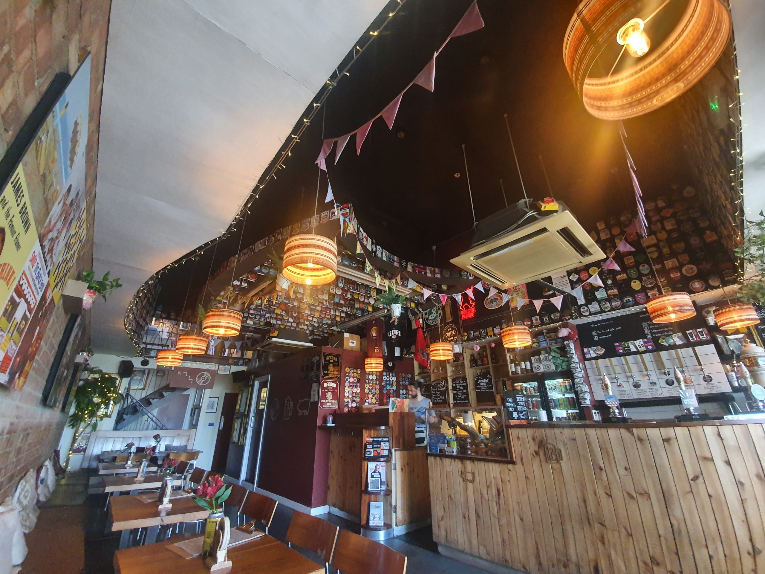 I still haven’t dealt with my blog post backlog from Leicester, but since I’m now in Bradford, I’d better start first with my little adventures here. This is the Good Beer Guide listed Record Cafe on North Parade, a mixture of Spanish restaurant, craft beer bar and record shop. That’s an intriguing mix by any measure.