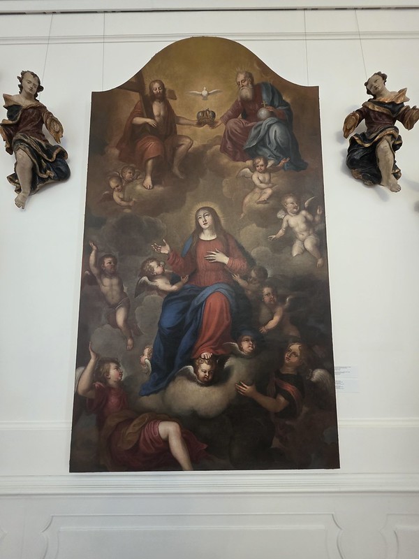 The artist of this painting is unknown, but it dates from the middle of the eighteenth century and it depicts the Coronation of the Virgin Mary. This sort of painting was likely once the centrepiece of a church altar, part of the visual storytelling for congregations, many of whom might have been illiterate, but could still spot a divine coronation when they saw one. The artwork has that unmistakably decadent Baroque flair of dramatic skies, dynamic poses, and a generally high angel-to-square-foot ratio. But, despite all that excitement, I didn’t like it.