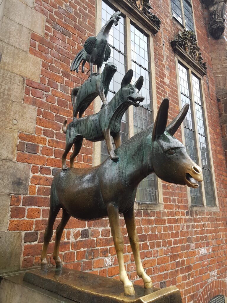 The sculpture known as The Town Musicians of Bremen, from the Grimms fairy tales story of 1819.