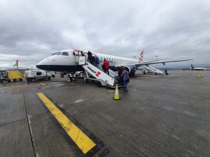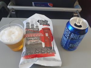 This being a CityFlyer flight meant that we got free food and drink. The food options weren’t decadent (a small brownie, crisps or corn nuts), but it was perfectly acceptable for an hour long flight. The Brewdog beer was very handy, although given I’d had a Guinness in the airport lounge, I probably didn’t need it. But it was free and so I panicked and ordered it. I decided not to drink any more beer that day…… This is where service standards differ a little from regular British Airways short haul services, as the only free drink offered on those is water.