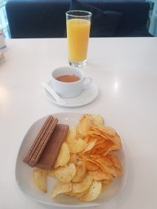 I didn’t turn the crisps down, that would have been rude. The coffee was rather bitter, but the orange juice was flavoursome. There were also some sandwiches, which weren’t particularly a taste sensation if I’m being honest.