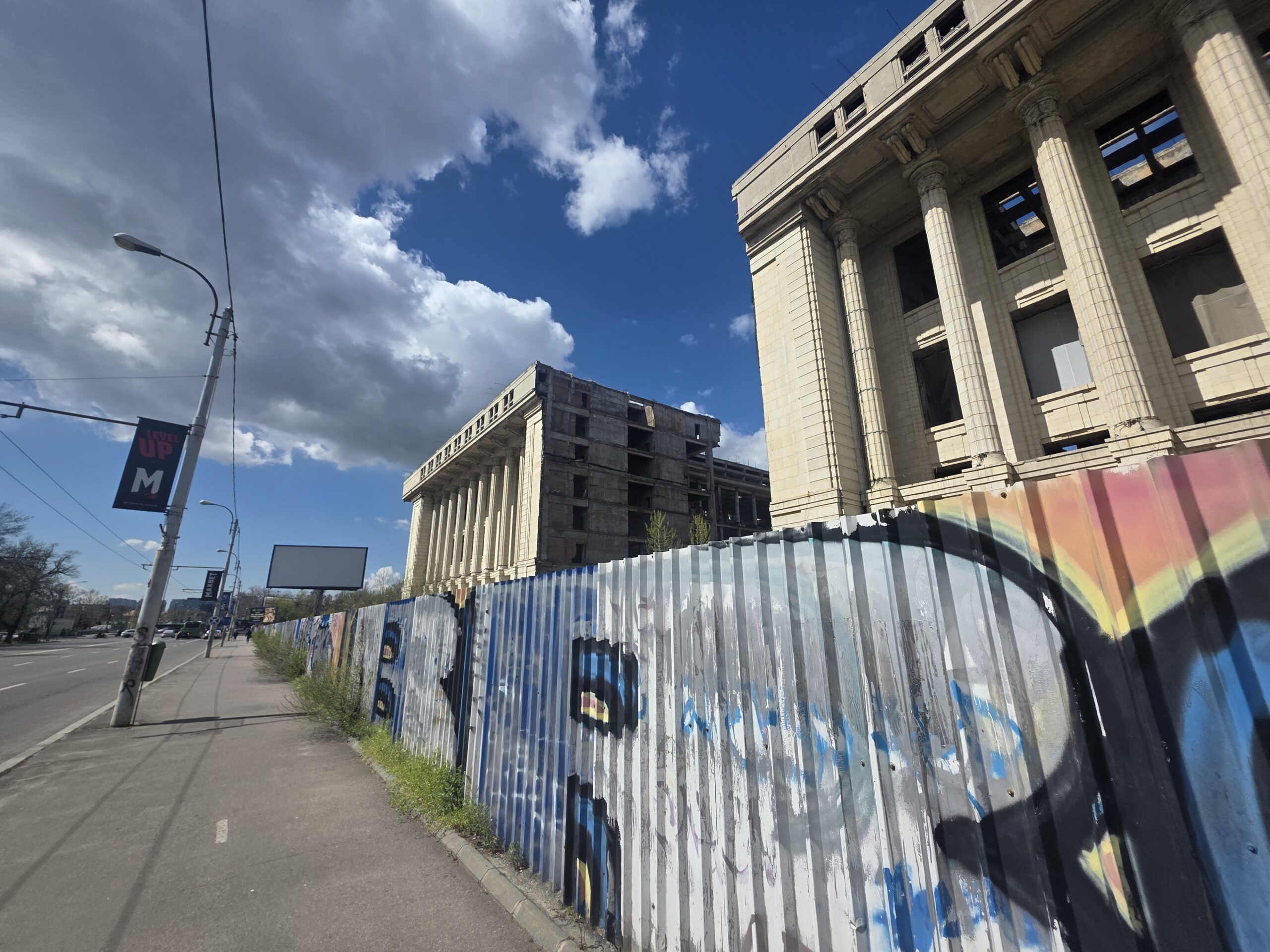 By the time of the 1989 Revolution which led to the execution of Ceausescu, the exterior was largely complete, yet the interior remained a hollow shell of concrete and steel. It was mostly left as it was, but there were plans to relocate the state broadcaster here, but there wasn’t enough money. There wasn’t always a big gap between the buildings, that was more recent work for a brand new project that also fell apart.