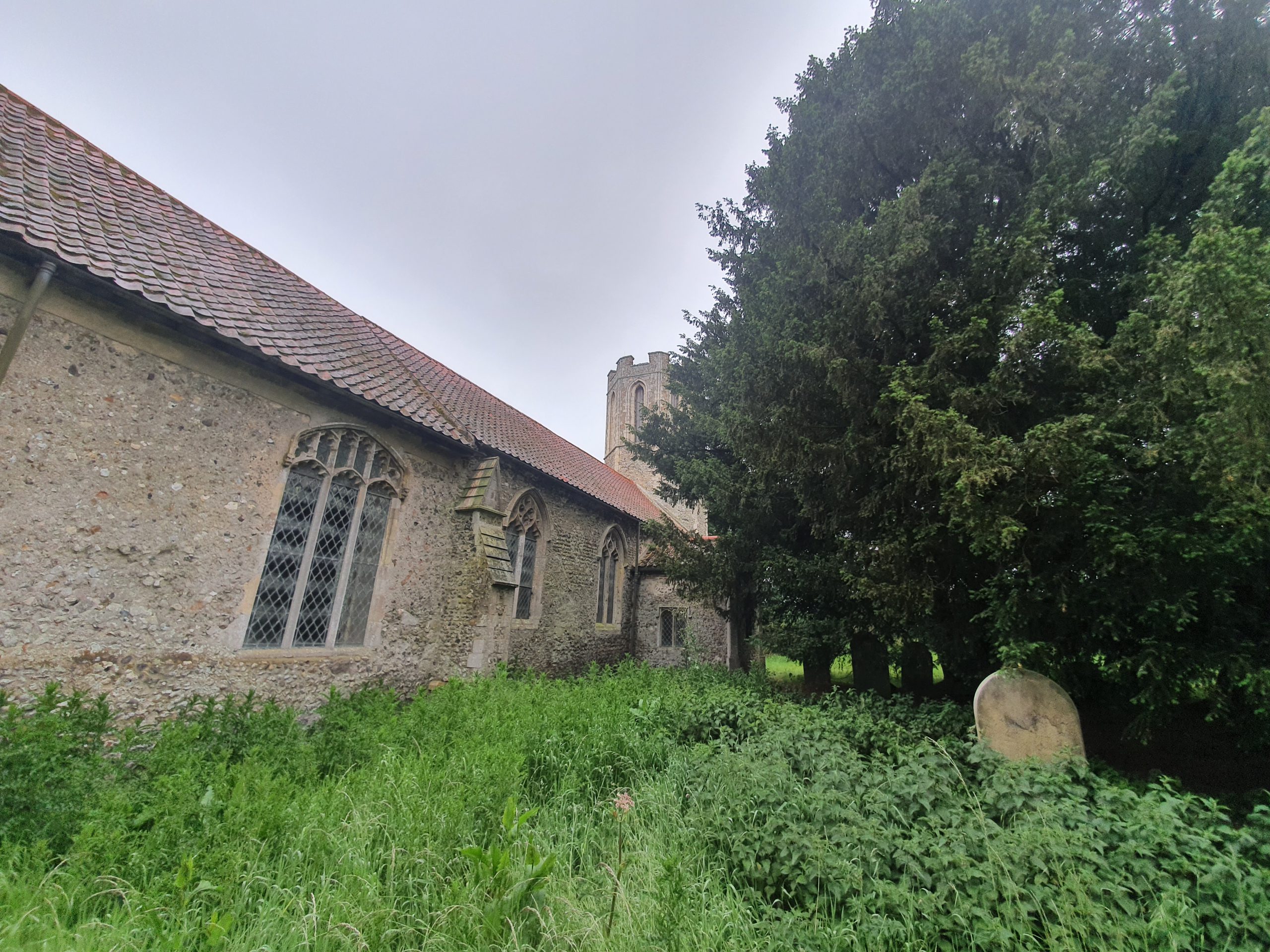 It’s difficult to know whether this is a deliberate wildlife garden approach to their graveyard, or whether they just haven’t been able to cut the grass recently. The village of Buckenham depopulated over the centuries, so there hasn’t been much of a congregation to support it for some time. The church was remodelled in the 1820s, which gives it a different feel to the much more brutal and comprehensive restructurings of the later nineteenth century, although a guide from the beginning of the twentieth century called the changes “fitful and destructive”. Numerous Roman remains have been found in the area, suggesting some form of Roman encampment locally, likely because there was a ferry site nearby.