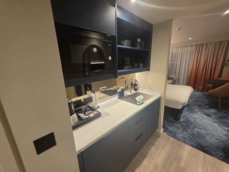Richard was very excited that the room he had booked came with a kitchenette. I was pleased that mine did too, but solely as I didn’t want him having a better room than me (I’m not petty). As an aside, I personally don’t like these kitchens in rooms, they’re a nightmare to clean properly for the staff and require substantial maintenance for something that many guests aren’t going to want. Keeping a microwave and every piece of cutlery and crockery clean isn’t an easy thing to do, I can’t really see why they want to burden themselves with this.