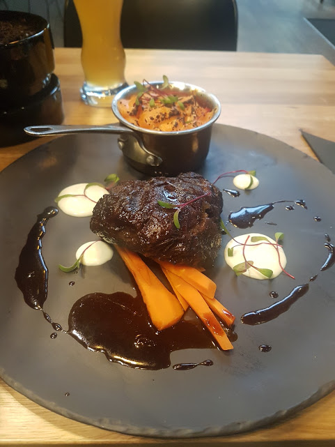 Beef cheeks with carrots, all rather artful in its presentation. The beef was tender and moist, falling apart as I cut into it, whilst the carrots added texture. The sauce was rich and it all came together beautifully.