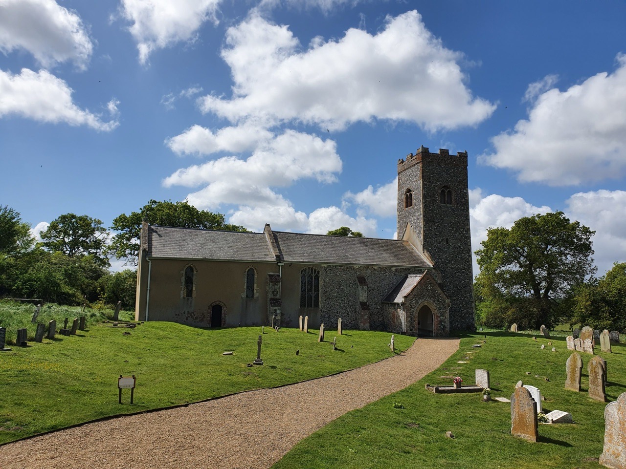 I’ll have to come back so that I can find out more about this church, as due to the virus, they’ve closed off the whole churchyard. The church itself is of interest as it’s next to the remains of the Roman town of Venta Icenorum and there is Roman brick used in the repair and construction of the structure.