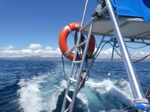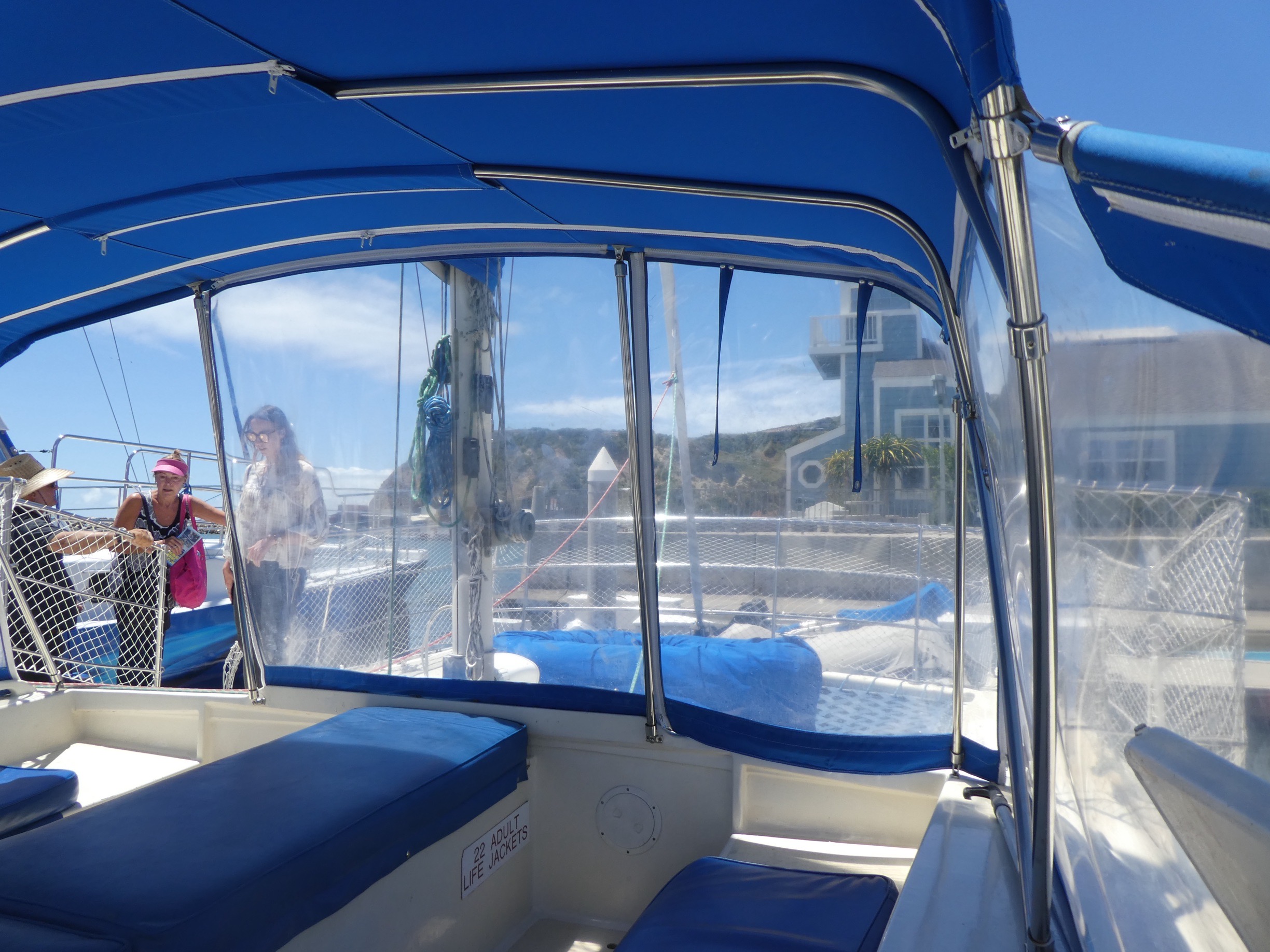 A view from the back of the boat. There were two crew members on the boat, one was up above looking around for whales and dolphins (and maybe polar bears, although I doubt they see many off California) and the other remained on board with everyone else. He was conversational and engaging, giving us lots of information about the dolphins and whales that we were seeing.