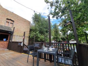 The new temporary entrance to the pub, where they’ve built a little obstacle course of having a mini river of what smelled like beer in front of the steps up.