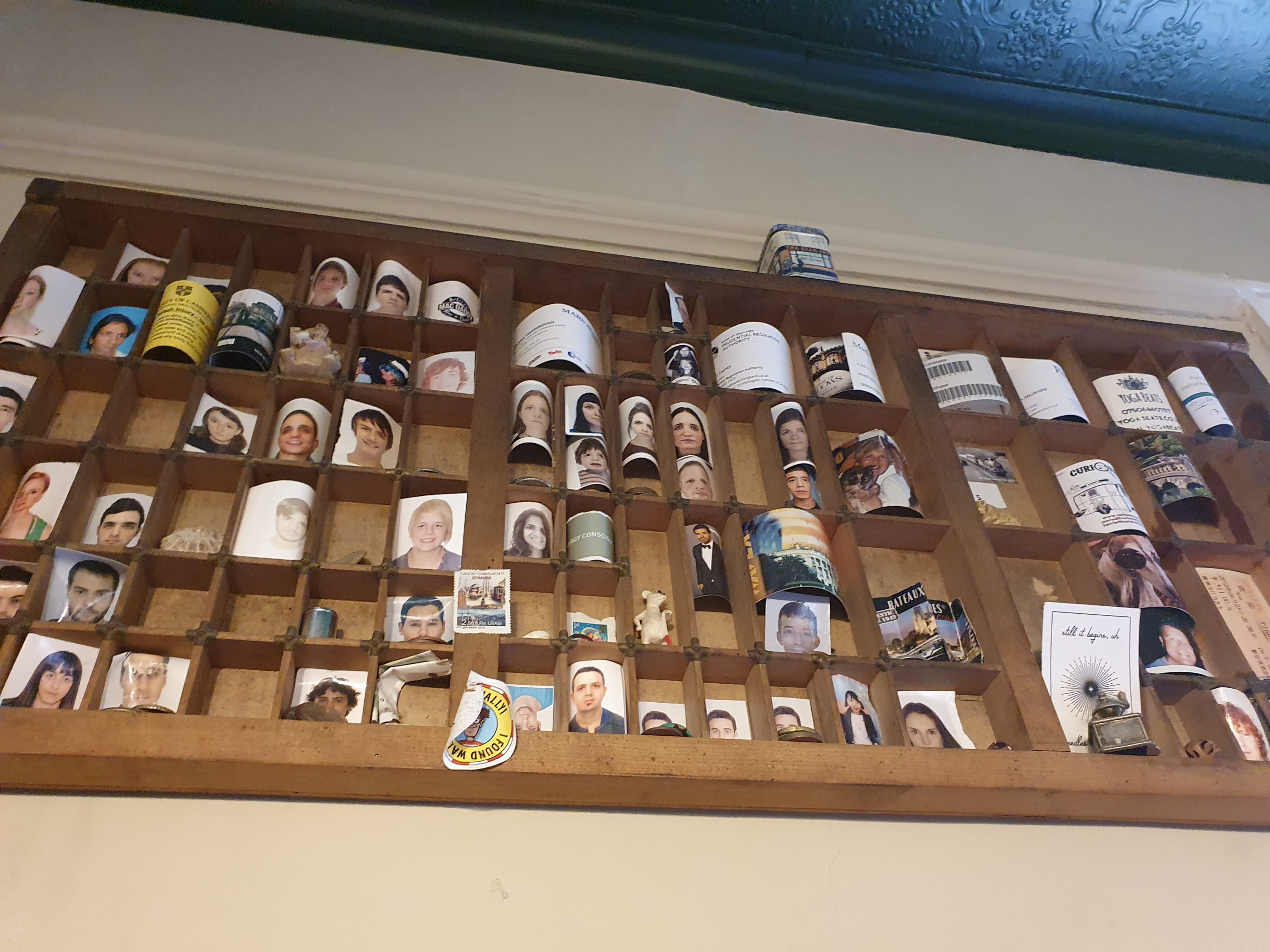 In a nod to their printing related name, local customers have given the pub random photos and, to be honest, some junk, which is placed in type cases that were once used by printers. The Good Pub Guide, which is a book I don’t much like (unlike the Good Beer Guide, which is truly excellent), says that the pub “was a print shop for a local paper” which doesn’t appear to be true.