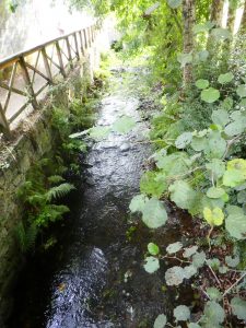 Standing on the bridge looking over the river, or stream, at Lavacolla.